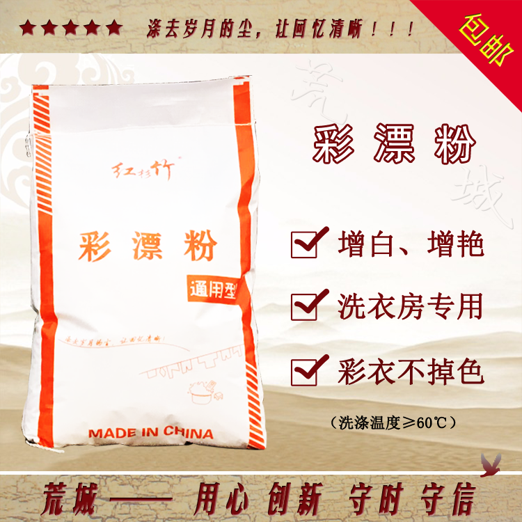 彩漂粉環保無污染、高性能、易溶解。具有漂白、去污、殺菌、除異味等功能,并擁有降低硬水中鈣、鎂離子的能力,使水軟化,另外的作用是使污垢和纖維在pH值增加時,有更多的負電荷,從而增加污垢與纖維之間的排斥性,提高了漂白和洗滌效果。彩漂粉漂白效果好,不損傷面料,不泛黃。在洗滌去污的同時,兼有漂白、殺菌、消毒等作用。